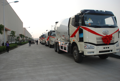 (上圖為水泥攪拌車發(fā)車現(xiàn)場)